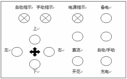 (11)自動/手動:消防炮自動與手動轉換開關,自動狀態(tài)下,長按上/下/左/右按鈕后放下,可使炮在運動范圍內實現(xiàn)自擺功能;手動狀態(tài)下,點動上/下/左/右按鈕,實現(xiàn)點動控制。